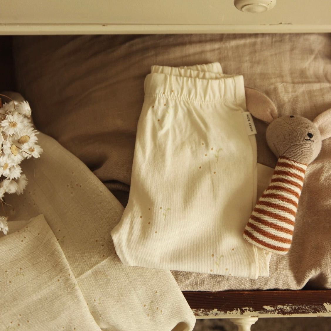 Get your little one ready for the day with our printed jersey leggings, featuring our delicate Wild Chamomile print as part of the Chamomile collection. Made from the softest 100% organic cotton jersey to be gentle on your babies skin. Our leggings are a classic shape with an elasticated waistband to make dressing easy. A stylish essential to your babies wardrobe, and makes the perfect gift.