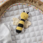 Meet your little one’s first friend - our Buzzing Bee Organic Cotton Rattle. Designed for tiny hands to grip, shake and squish, this sweet rattle brings joy to playtime while helping develop early motor skills. With its gentle sound, soft texture and adorable neck ruff this rattle makes an adorable new baby gift.