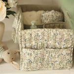 The perfect addition to your baby changing station. Our quilted nappy caddy has 2 outer pockets and 3 inner compartments, perfectly sized for storing nappies, creams and wipes. Handles make the caddy portable so your baby changing essentials can always be close to hand.