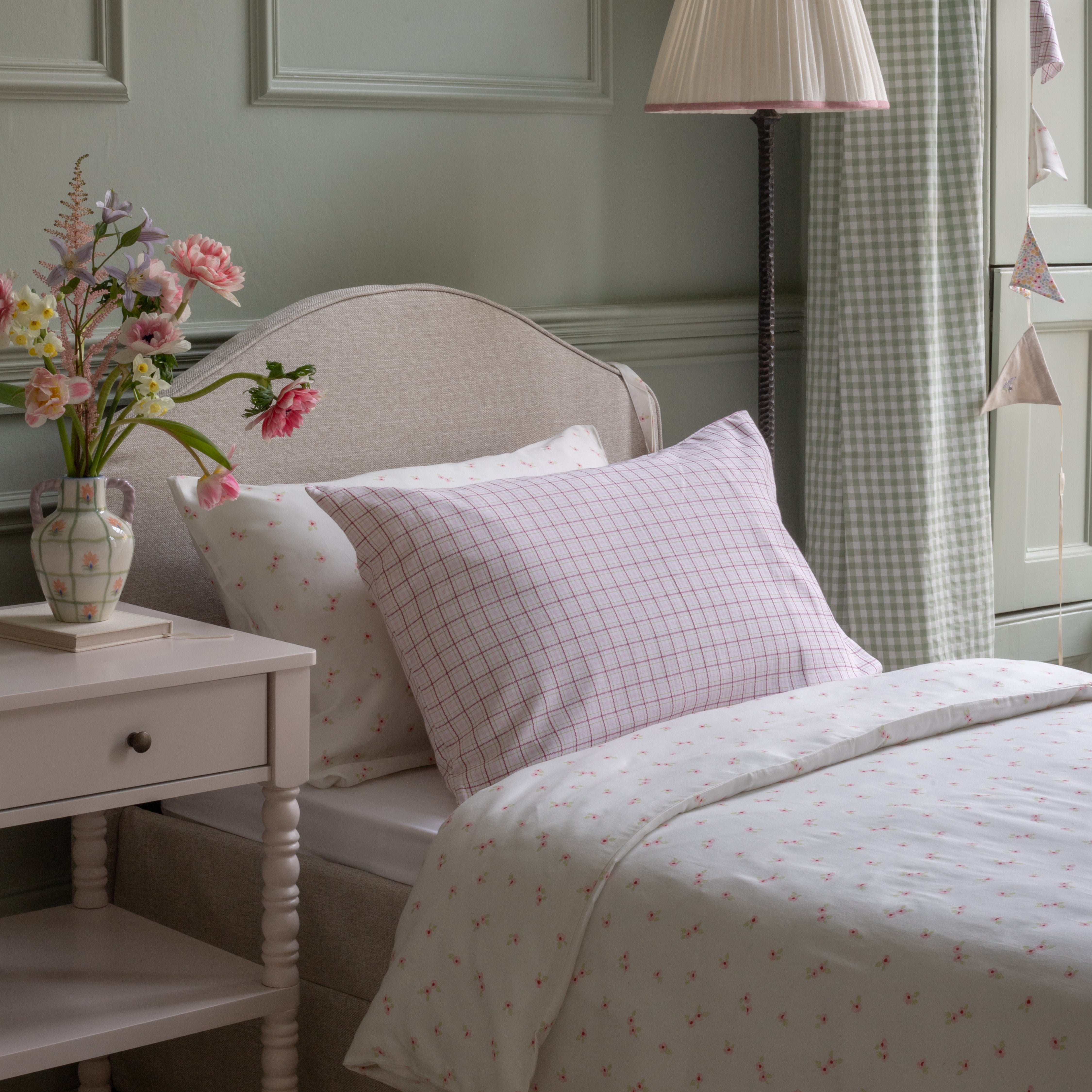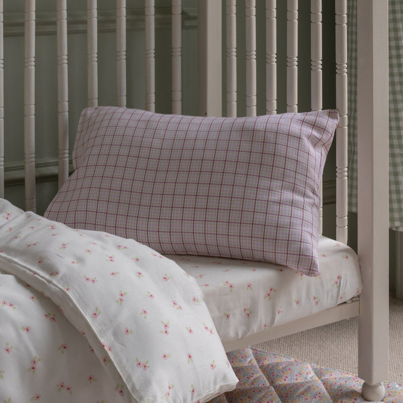 Organic Cotton Cotbed Pillowcase - Pink Check