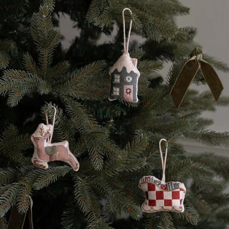 This single embroidered organic cotton tree decoration will add a touch of fun to any tree. In the shape of a Reindeer flying through the sky, this motif is complemented perfectly by our Sleigh and House decorations.
