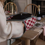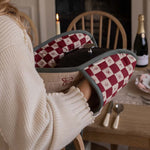 Serve your festive meals in style with our organic cotton Christmas Oven Gloves. Designed with a playful checkerboard design, contrasting dark green binding, and a delicate embroidered bow, these double oven gloves are both practical and beautiful. Quilted with a thermal lining to keep hands safe and comfortable, and finished with a handy hanging loop, they’re perfect for everyday use throughout the holiday season.