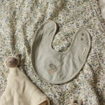 This soft organic cotton bib is perfect for milk feeds and teething babies. Made from soft cotton jersey with a terry cotton back for extra absorption, this bib features a sweet little embroidered frog and is designed as part of our Riverbank collection.