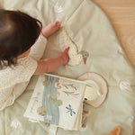 Our Lilypad shaped activity mat features all our favourite friends from the Riverbank Collection. With sensory elements such as a mirror, frog toy, crinkly leaves and a squeaky fluffy duck, this activity mat is designed with playing at home in mind. Made from 100% organic cotton and recycled polyester filling, this mat will entertain your little ones and fit perfectly into your home. Comes with a drawstring canvas bag for easy storage.
