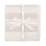 Introducing our striped scallop edge 100% organic cotton blanket. The unique scallop edging adds something a little extra to this classic style. Designed with a bold stripe in 2 subtle colours, bring style and comfort to your nursery.