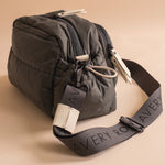 Meet our Pram Organiser Bag in Soft Black – the perfect mix of style, sustainability, and practical design for busy parents on the move. Designed for newborn strolls to toddler adventures and beyond. Made from recycled, water-resistant materials with a soft quilted finish, this compact stroller organiser transitions effortlessly to a stylish crossbody bag.