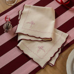 Dress your festive table in style with our Set of 2 Organic Cotton Christmas Napkins, the perfect finishing touch for your Christmas dinner. Each napkin comes in a soft off-white organic cotton, finished with a delicate burgundy trim and playful embroidered bow motifs for a seasonal yet timeless look.