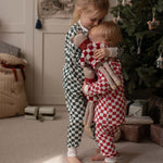 Snuggle your little one in cosy comfort with our Green Checkerboard Christmas Pyjamas, crafted from the softest 100% organic cotton jersey. Featuring playful festive green checkerboard pattern complemented by an embroidered sweet and sparkly Reindeer patch on the chest.