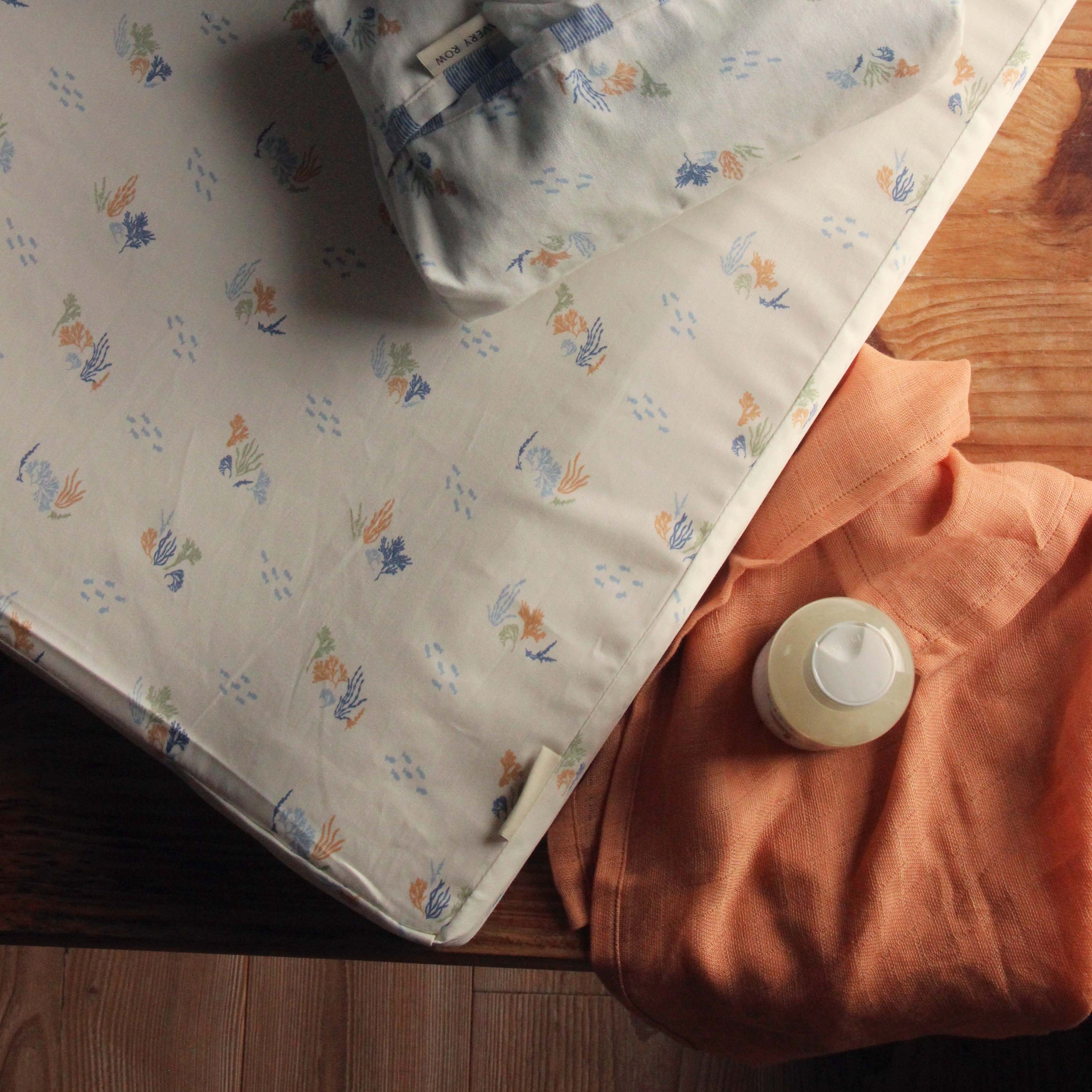 Our Baby Changing Mat Covers are made from 100% organic cotton percale and have a water repellent coating to ensure any accidents are easy to clean up. The cover is easily removed using the zipper. Explore our Baby Changing Mat, they make a lovely addition to a nursery or changing table and create a soft and comfortable space to change baby.