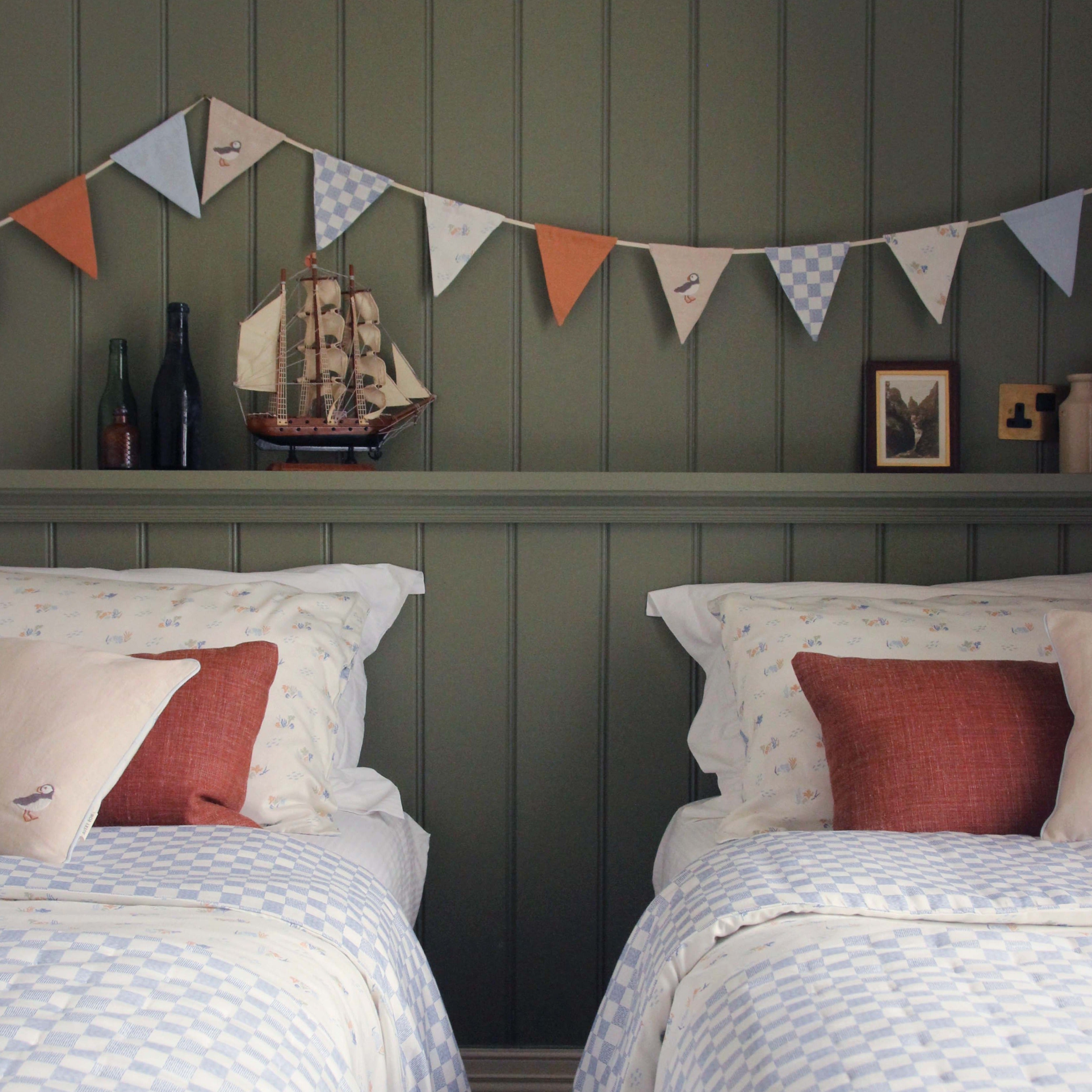 Practical, stylish, and sustainably made, this organic cotton bunting is the perfect way to personalise your child’s space while tying together your Coastline collection.