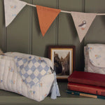 Our organic cotton quilted wash bag comes in our unique prints with a stylish tassel. A beautifully designed, practical pouch for parent or baby to store your toiletries, make up, and more or nappies and creams. It also has a handy elasticised pocket inside. The product that is for parent and baby and has an infinite number of uses.