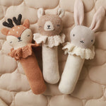 Meet your little one’s first friend - our Dainty Deer Organic Cotton Rattle. Designed for tiny hands to grip, shake and squish, this sweet rattle brings joy to playtime while helping develop early motor skills. With its gentle sound, soft texture and adorable neck ruff this rattle makes an adorable new baby gift.