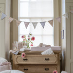 Practical, stylish, and sustainably made, thisorganic cotton bunting is the perfect way to personalise your child’s space while tying together your Wildflower Garden collection.