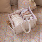 Keep all your baby changing essentials neatly organised with our quilted Nappy Caddy. Crafted from soft organic cotton sateen, this stylish and practical caddy is perfect for storing nappies, creams, wipes, and other nursery essentials, while its sturdy handles make it easy to move from room to room.