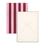 Add a festive touch to your kitchen with our Set of 2 Organic Cotton Christmas Tea Towels, crafted from 100% organic cotton. Designed with a playful pink and red stripe, dark green edging, and a delicate embroidered bow, these tea towels are as stylish as they are practical. Soft, absorbent, and finished with a hanging loop, they’re made to be used and loved year after year.