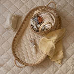 Our organic cotton quilted liners are super soft and extremely versatile. Use them as a comfortable pad in our seagrass changing baskets, or as a liner in moses baskets, or bassinet style prams. The organic cotton percale has a light water resistant coating to delay liquids being absorbed into the soft cotton fabric.