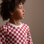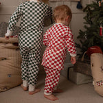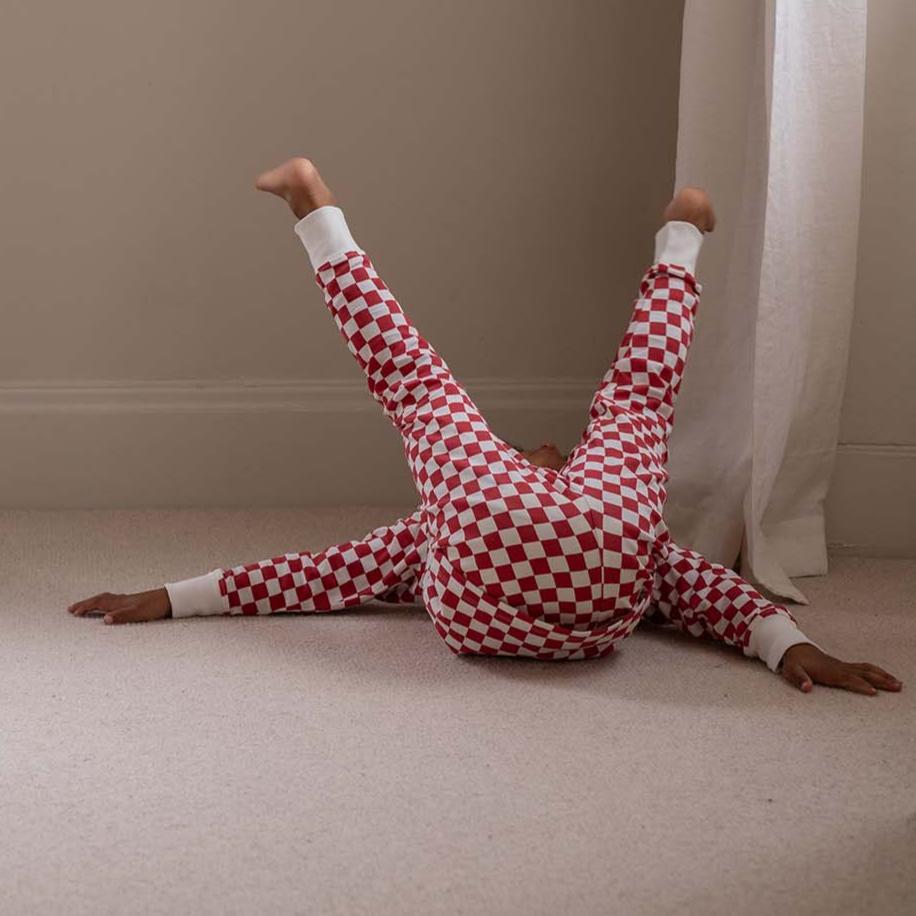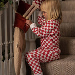 Children's Christmas Jersey Pyjamas - Red Checkerboard