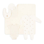 • Set includes: 1 embroidered jersey sleepsuit, 1 printed jersey bodysuit, 1 printed jersey hat, 1 embroidered jersey bib, 1 printed jersey blanket
