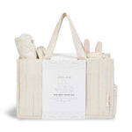 The perfect addition to your baby changing station. Our quilted nappy caddy has 2 outer pockets and 3 inner compartments, perfectly sized for storing nappies, creams and wipes.
